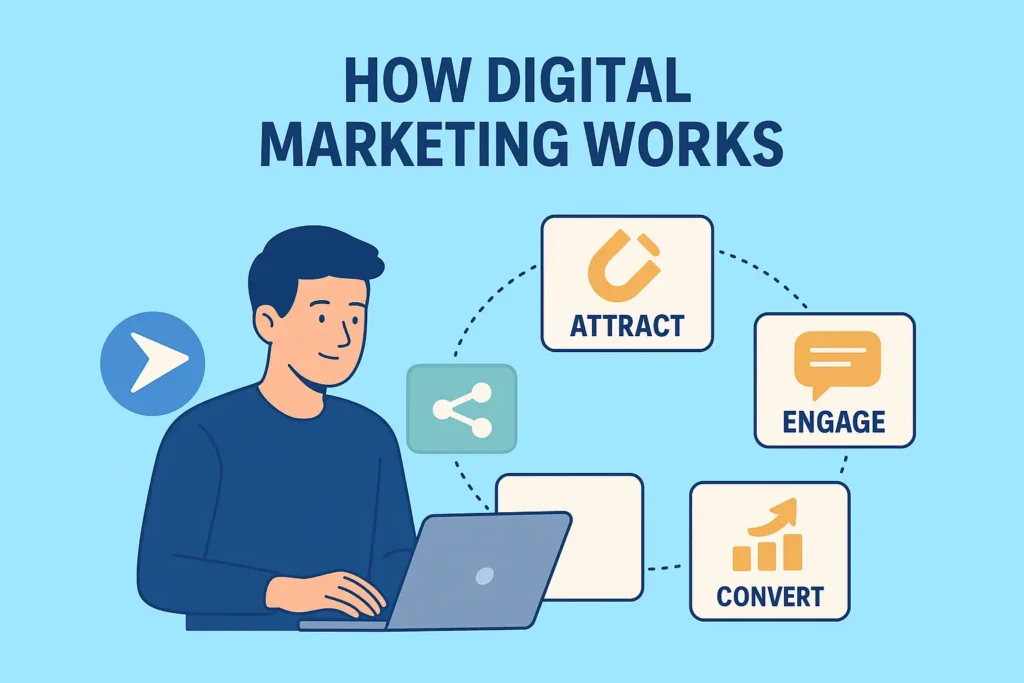 Digital marketing—sounds fancy, right? But at its core, it’s simply the art of promoting your business online, where your customers spend most of their time: scrolling, searching, shopping, and occasionally stalking their favourite influencers. In today’s digital-first world, businesses that want to grow must show up online—and show up smartly.